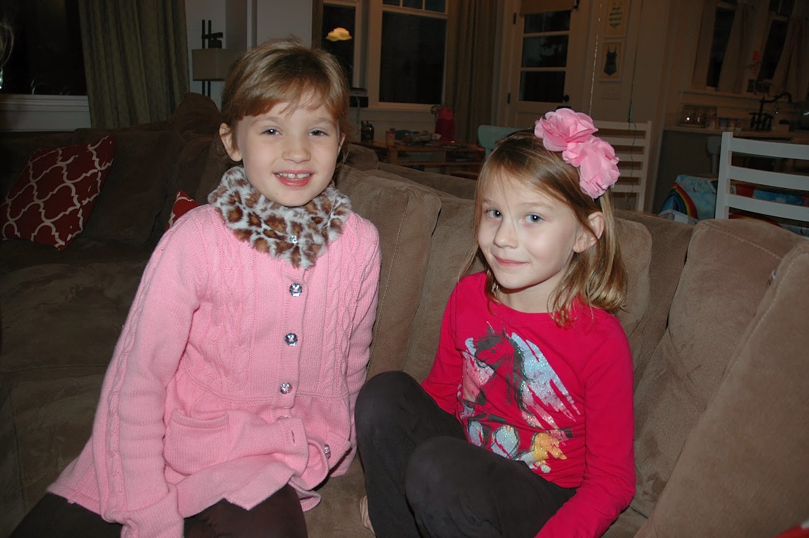 Berkeley has been asking for years to get her hair cut short like mine and we have always said no because we knew as soon as she cut it, she'd lose that "little girl" look and she'd end up looking way older and we just weren't ready for that. After having my own minor meltdown due to hormones one Sunday morning while brushing out hair and listening to the whining and crying that accompanies our morning routine (not from Berk, just Fin) and exhausted from dealing with all the hair drama I finally said "That's it, no more hair, I can't handle it anymore" and we decided to let her chop it! I think at one point I even said that I hoped this baby was a boy so I could shave his head and not have to brush out any more tangled hair in the mornings. Oliver said "Yeah, me too, boys never cry when they get their hair cut." So, Laura came over on October 25 and did some major chopping. This was Finley's very first hair cut and her hair was just about down to her bottom. She got about 4-5 inches cut off and Berkeley got about 10-11 inches cut off. Finley sat so still. Laura said she's never had a 3 year old who has sat so still. I think Fin enjoyed it. Berkeley kept shaking her head around because she's never had short hair and it felt so weird to her. After it was over, she couldn't wait to show Tom when he came home. She looked super cute, but we were right, she now looks like a 14 year old instead of an 8 year old. (She acts likes it too). I have to admit, it is so much easier, but why do they have to grow up?